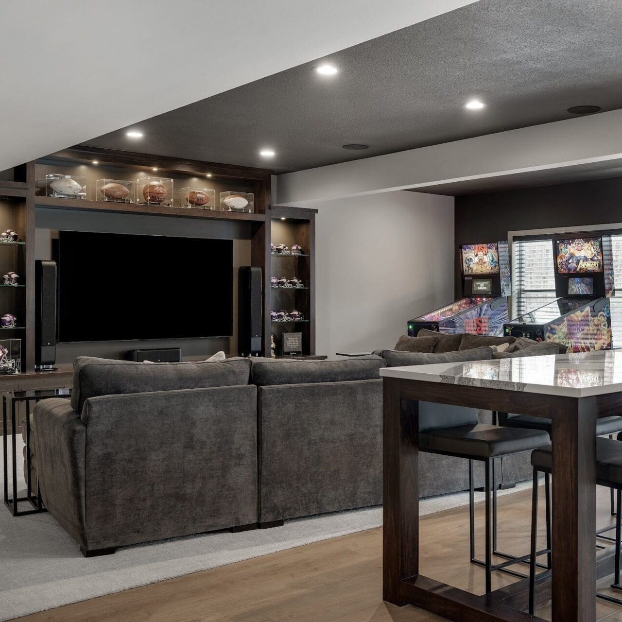 Because basements often host family gatherings or high-traffic activities, we focus on durable materials that are comfortable, easy to maintain, and designed to last.